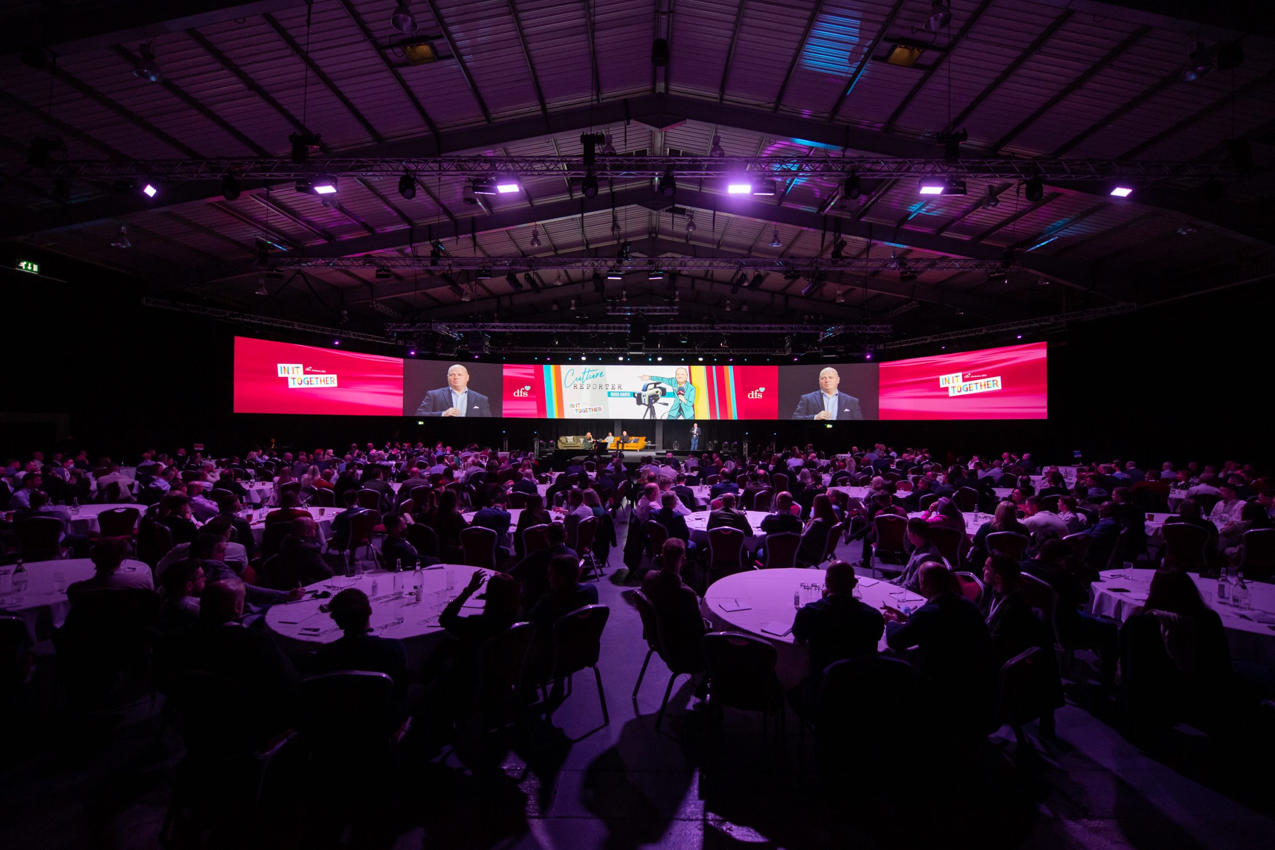 This year’s annual conference welcomed c.1500 in-person and virtual attendees. Hosted at The International Centre, Telford, the experience included a combination of interviews and presentations incorporating a 58m super-wide projection screen in the main room, supported by a range of feature films and animation. In addition, there was an interactive product showcase and showroom of the future, immersive breakout groups, and an exhilarating gala dinner, awards and after-party – it was an event filled with surprise and delight.